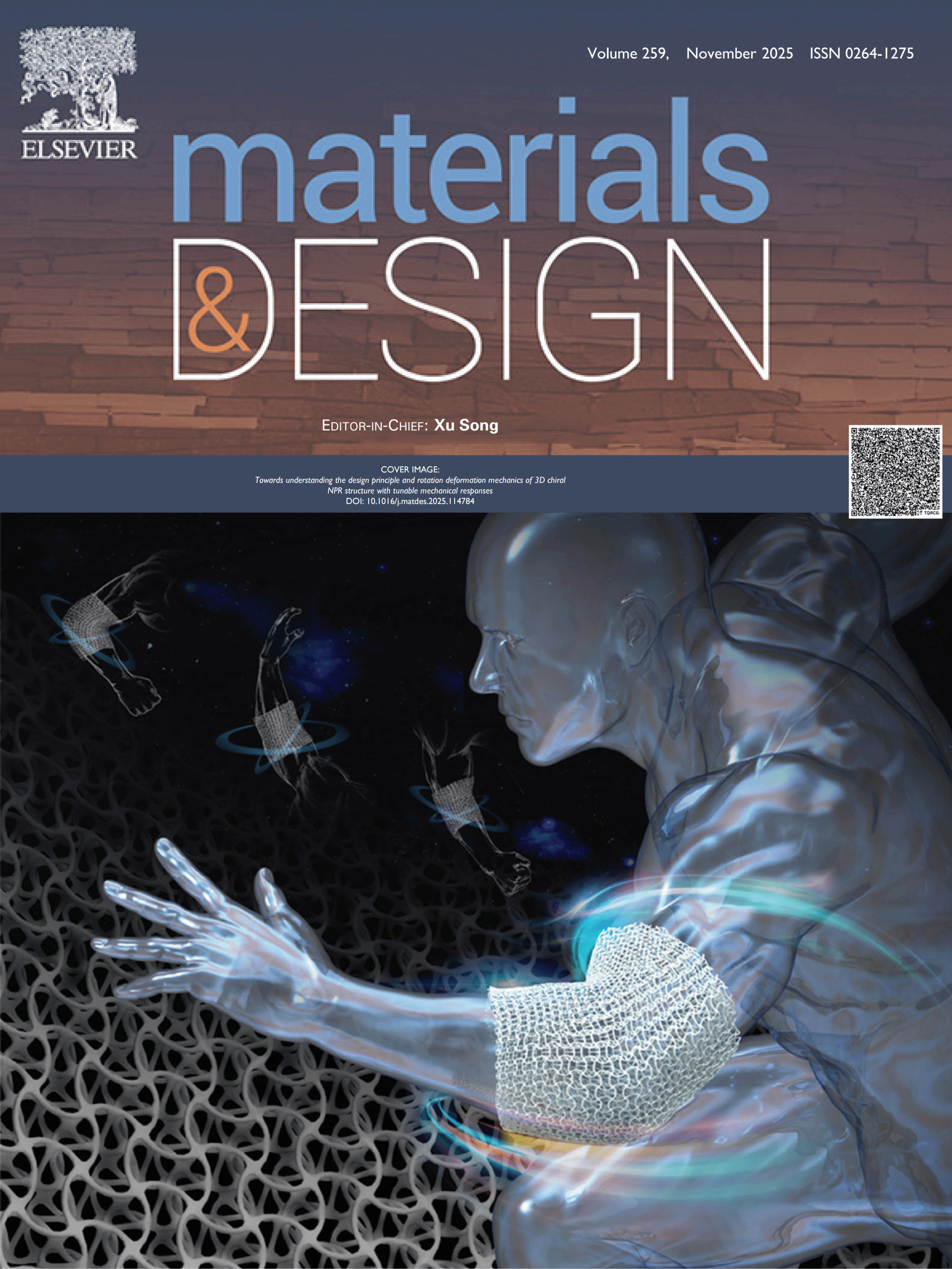 (记者 焦思勤)近日,我校珠宝学院“宝石矿物材料与设计智造”研究生导学团队在国际知名期刊《材料与设计》上发表重要研究成果,并入选当期封面。论文题目为《具有可调机械响应的三维手性负泊松比结构的设计原理及旋转变形力学机制研究》。封面展示了三维手性负泊松比结构及其在穿戴防护领域的应用(图1),该论文第一作者为珠宝学院博士生潘瑞琪,通讯作者为珠宝学院张荣红教授和华中科技大学杨磊副教授。