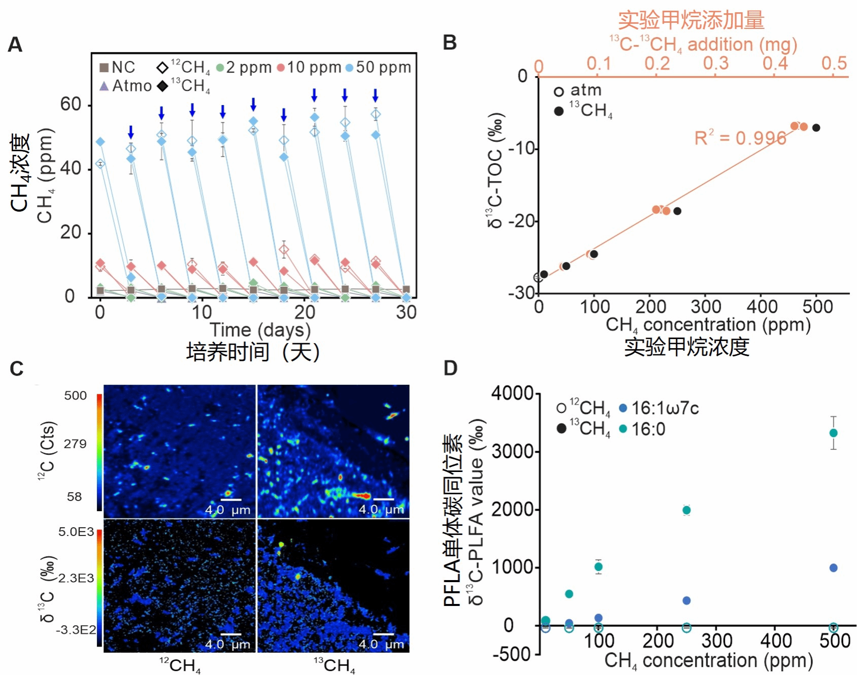 图1 洞穴沉积物微宇宙体系中13C-13CH4流向,图C入选当期精选图片。