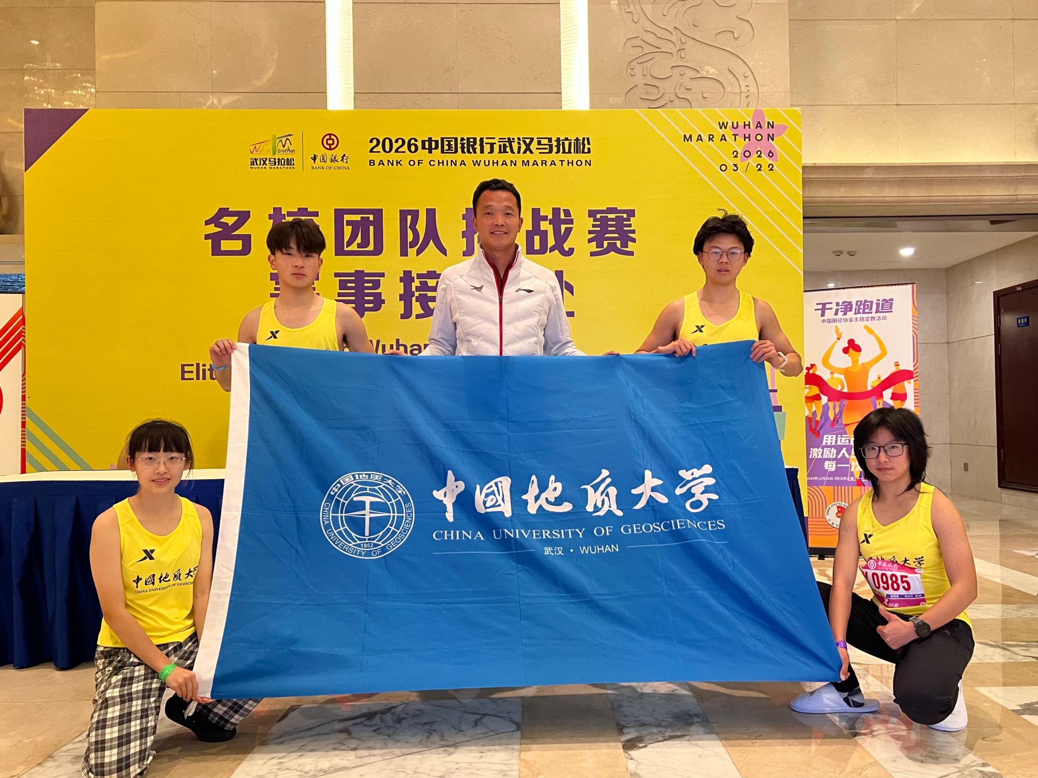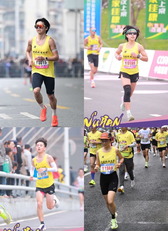 同时,我校受邀出战“名校团队挑战赛”,4名非体育专业优秀学子组队,与31所国内外顶尖高校代表队同台竞技。参赛学子兼顾学业、科研与训练,凭借顽强意志和团队协作精神圆满完赛,地理与信息工程学院研一学生龚郅敏,平衡科研与运动双重挑战,在赛场上稳扎稳打,以2小时46分13秒完赛;地球与行星科学学院大三学生莫莹莹以3小时33分44秒冲线,尽显巾帼风采;地球物理与空间信息工程学院大四学生潘文康、地理与信息工程学院大四学生李恬分别以1小时26分18秒、1小时55分13秒完成半程马拉松,用稳定发挥诠释拼搏精神。