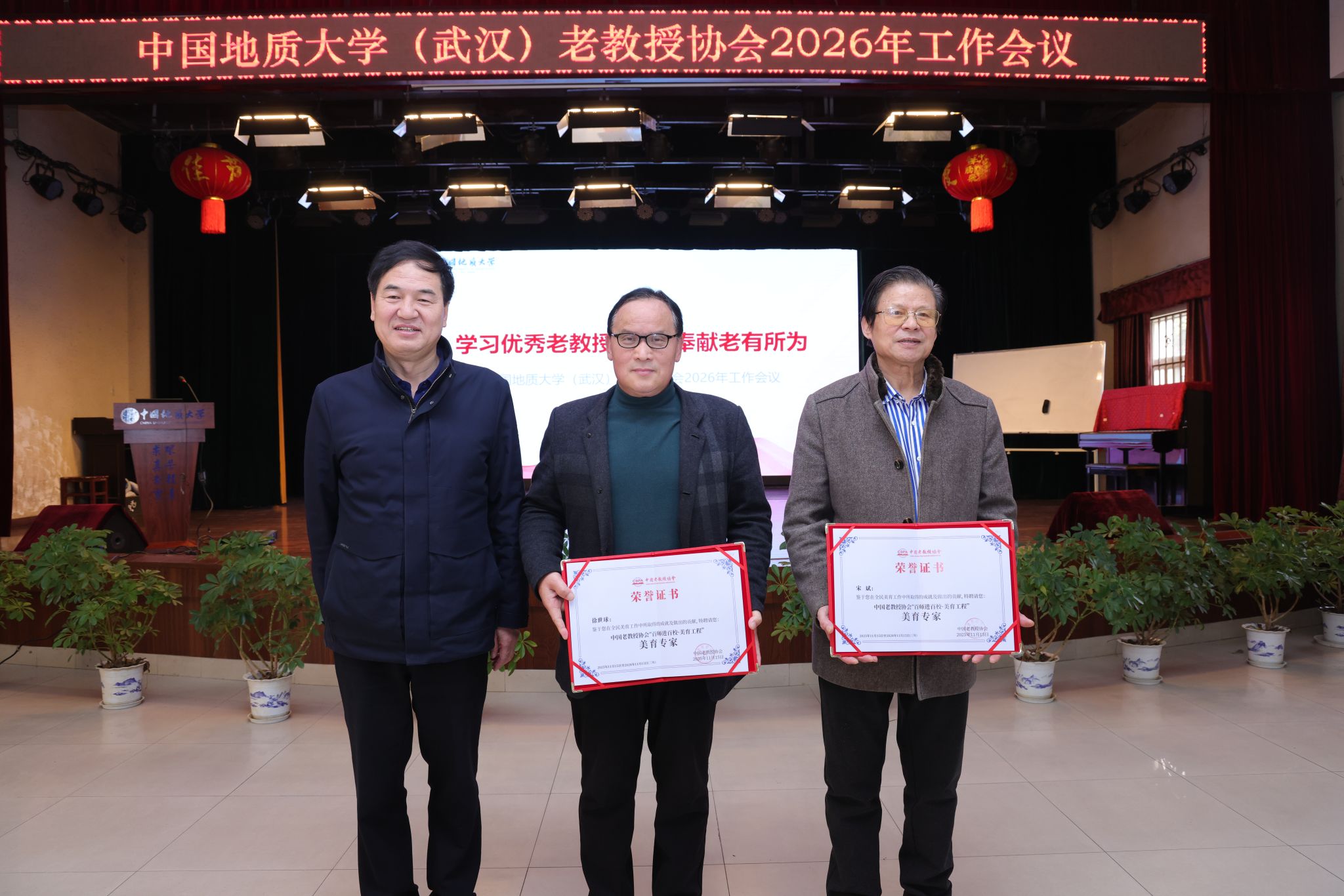 会议现场,离退休工作处处长张宽裕为宋斌教授、徐世球教授颁发了中国老教授协会的“美育专家”聘书,以及湖北省老教授协会的“老教授报告团成员”聘书。两位教授表示,将珍惜这份荣誉,充分发挥自身专业优势,积极投身美育事业和科普事业,为培养德智体美劳全面发展的社会主义建设者和接班人贡献力量。据悉,中国老教授协会于2025年8月启动“百师进百校美育工程”,组织百名资深教授和艺术家走进基层,开展美育大师课、名家讲座、名师工作坊等活动,推动银龄美育工作的创新发展。湖北省老教协共有11位教授受聘参与该工程,我校宋斌教授、徐世球教授入选。