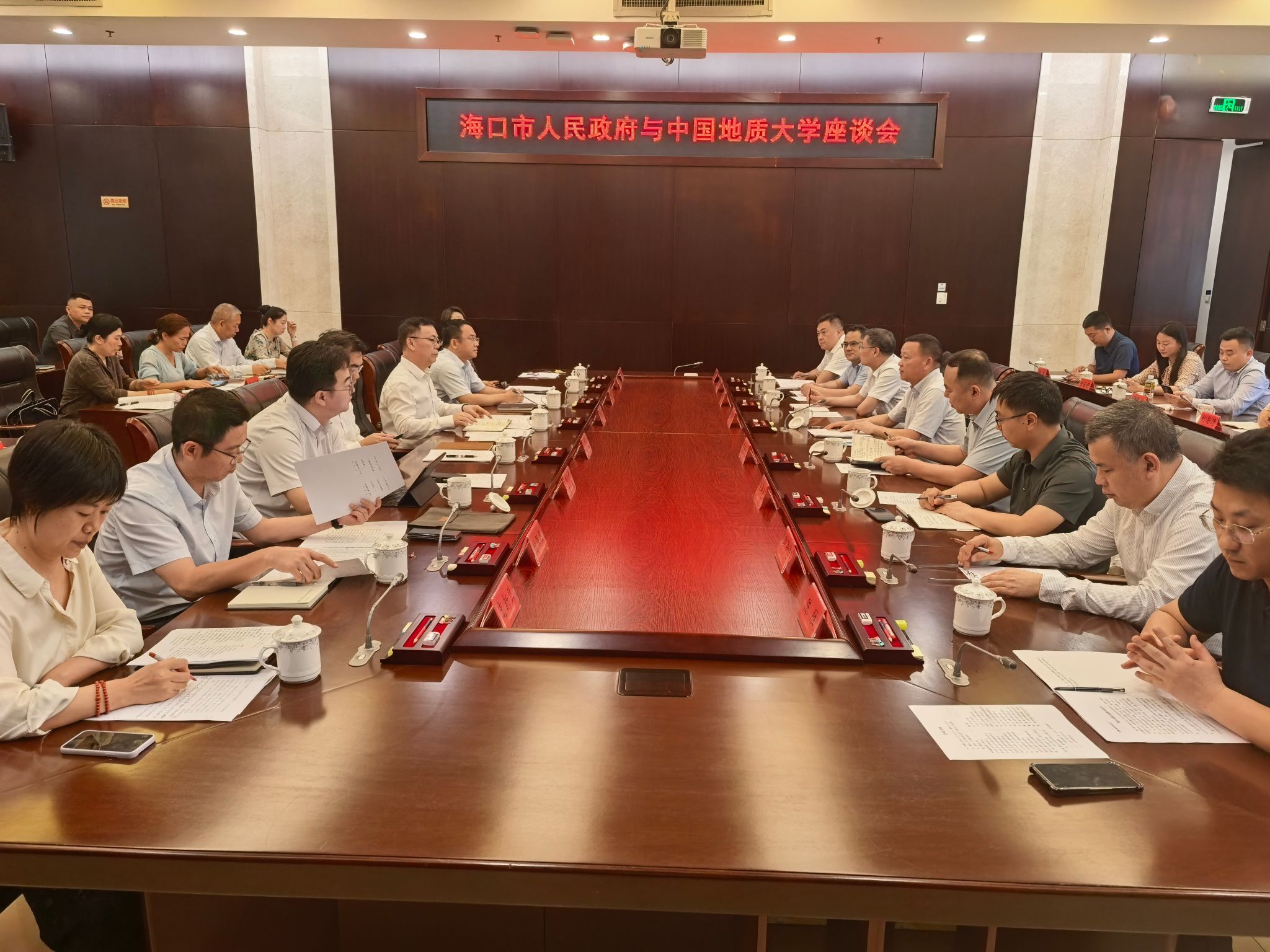 3月26日下午,王林清一行与海口市人民政府座谈交流。海口市政府副市长冯勇及相关部门负责人参加座谈交流。