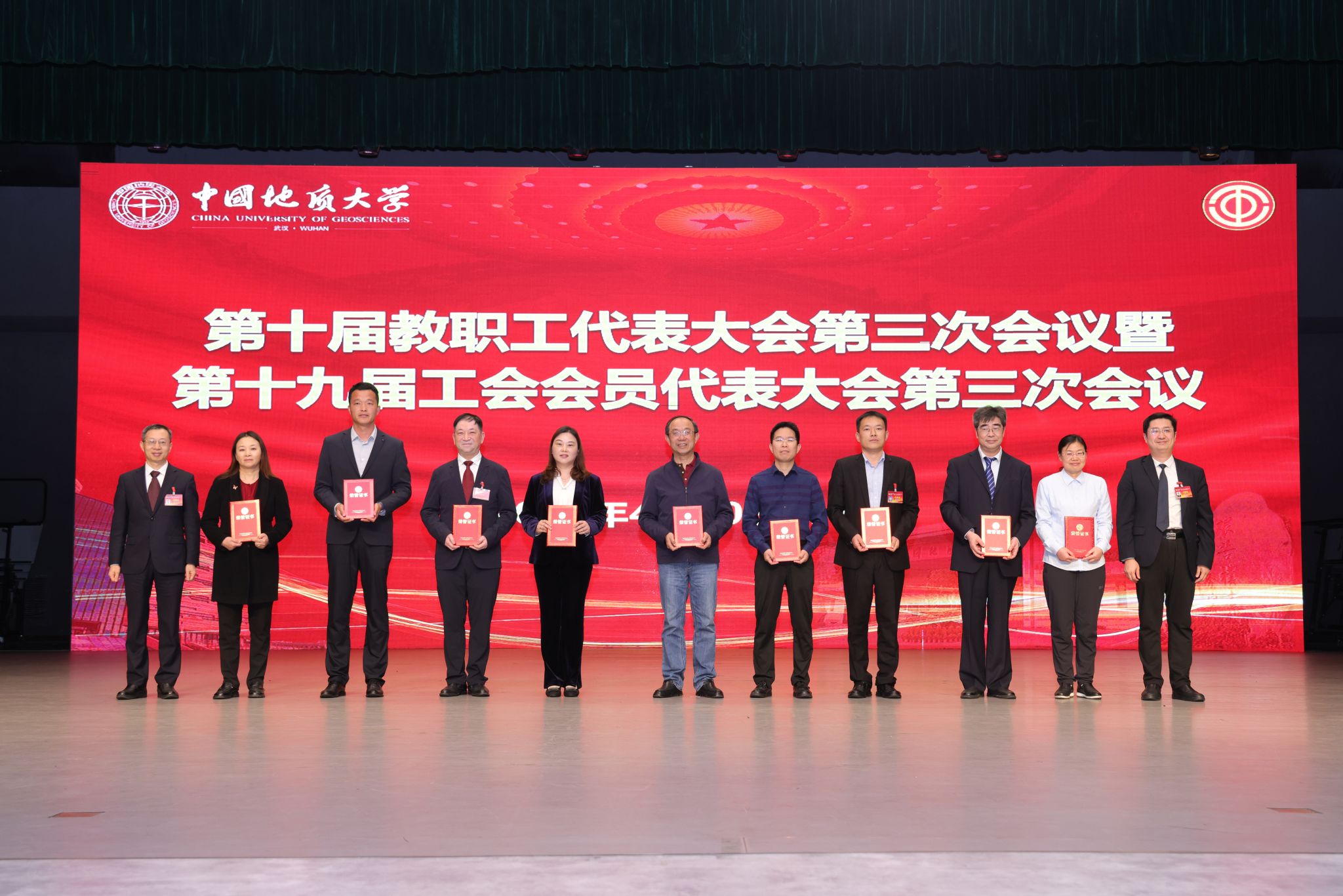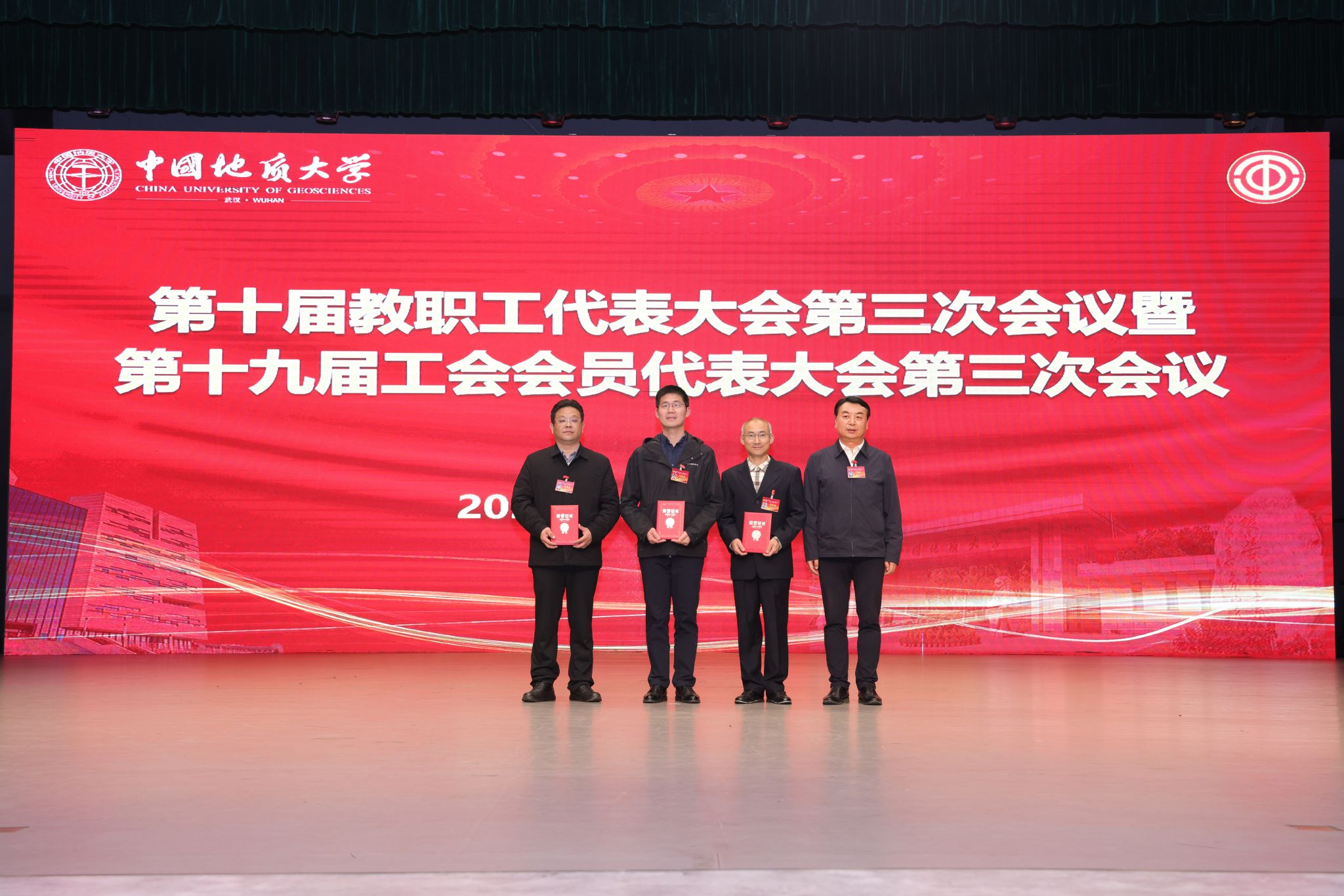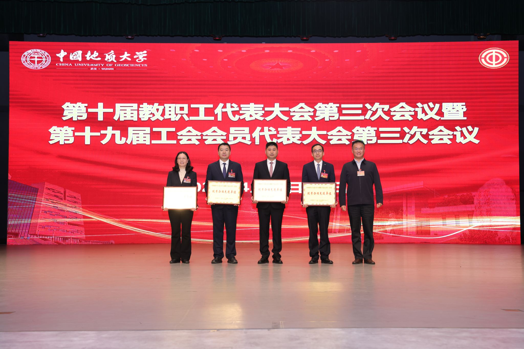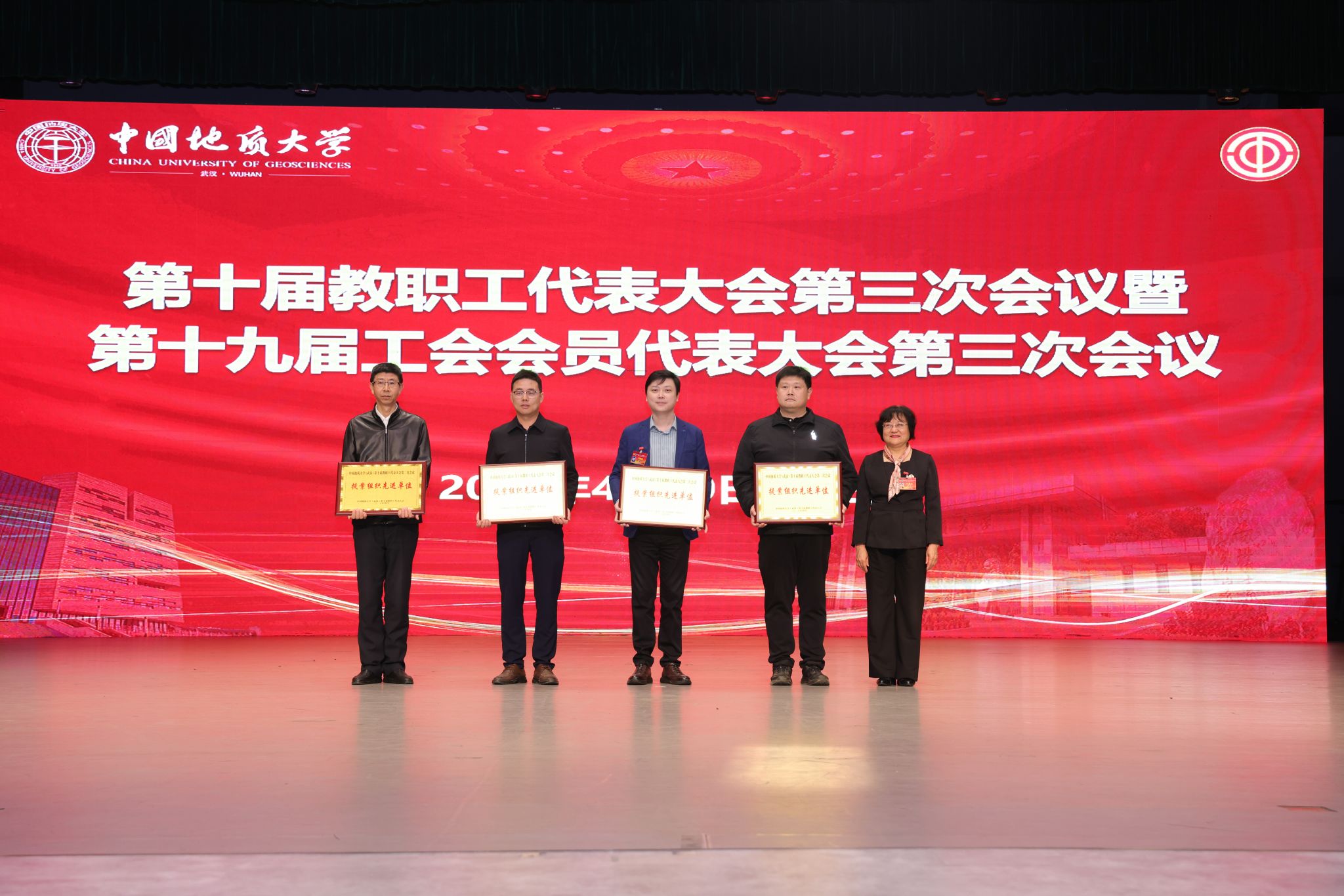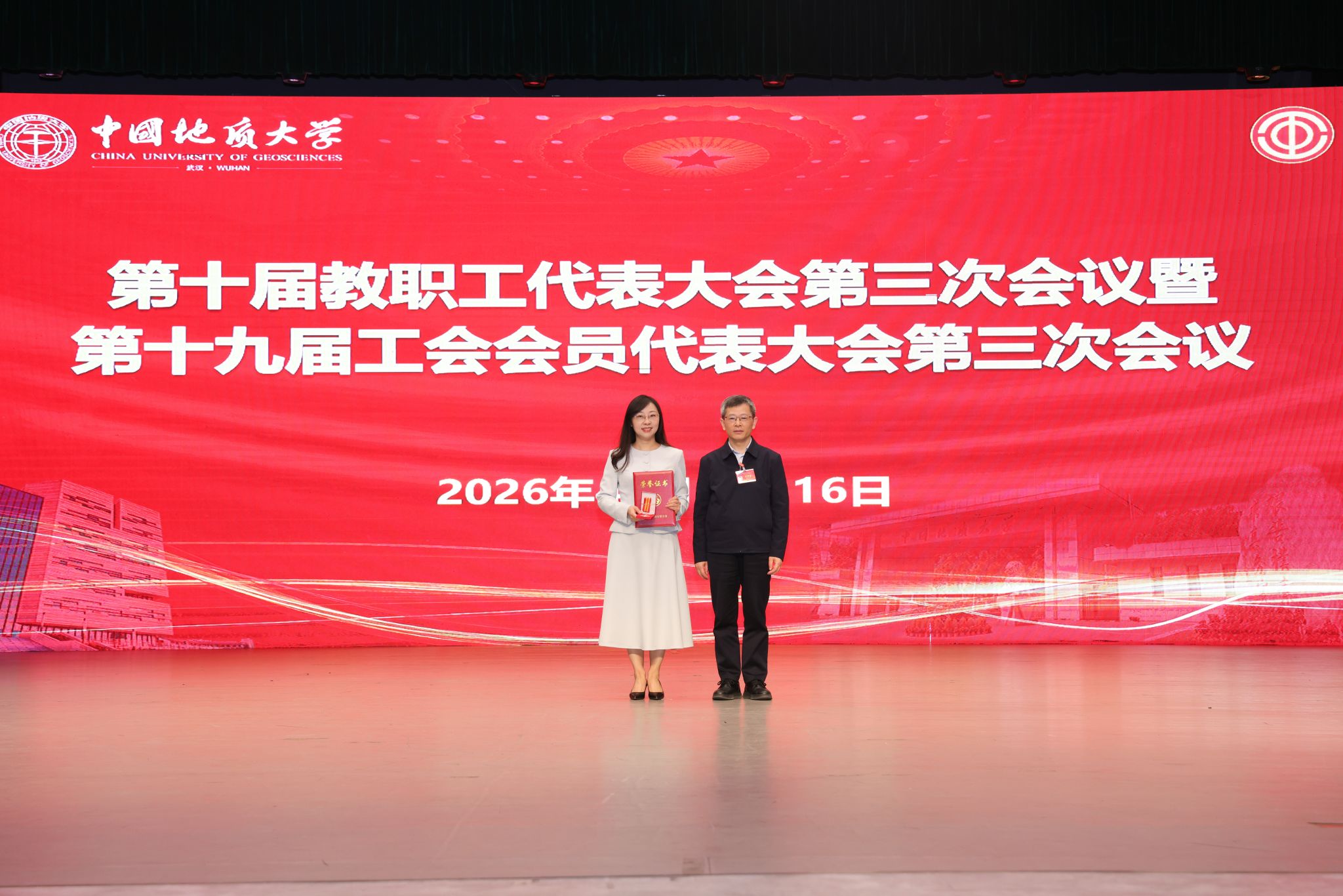会议对2025年“全国先进工作者”获得者,2025年“全国三八红旗手”获得者,“第五届最美地大教工”获得者,十届二次教代会“优秀提案”提案人、提案组织先进单位、提案办理先进单位进行表彰。校领导分别为获奖单位代表和个人颁奖。