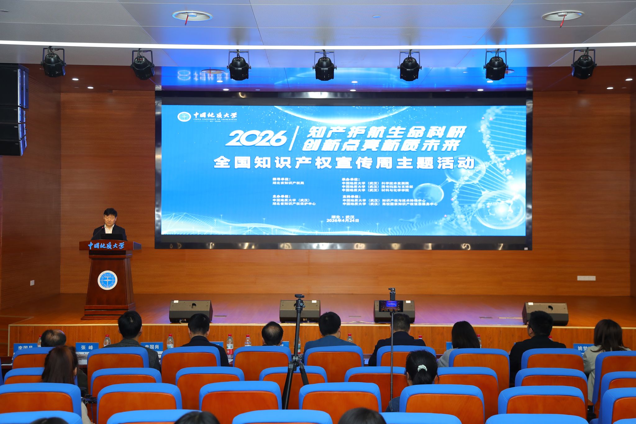 地大新闻网讯(通讯员 柳杨 摄影 孙长恒)4月24日,由湖北省知识产权局指导,我校与湖北省知识产权保护中心联合主办,我校科学技术发展院、图书档案与文博部、材料与化学学院共同承办的2026年全国知识产权宣传周主题活动在未来城校区图书馆一楼报告厅开幕。