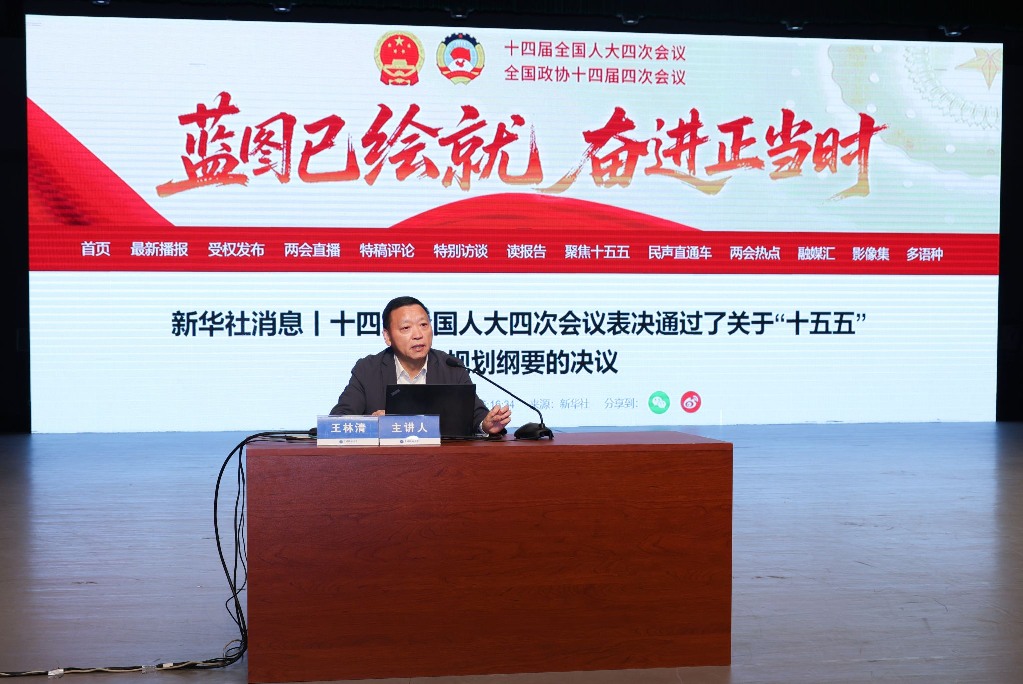 王林清以《深入学习贯彻四中全会精神 争做堪当大任的时代好青年》为题,从“十五五”规划制定的背景与核心定位切入,结合学校地质、能源、空间信息等学科优势,勉励学员将个人专业学习与国家战略需求精准对接,在基础研究和关键核心技术攻关中展现地大作为。王林清带领学员重温了2020年习近平总书记在中央党校(国家行政学院)中青年干部培训班上提出的“七种能力”要求,强调要从政治能力、调查研究能力、科学决策能力、改革攻坚能力、应急处突能力、群众工作能力、抓落实能力入手,全面修学储能,以钉钉子精神把入党初心转化为服务中国式现代化的实际行动。