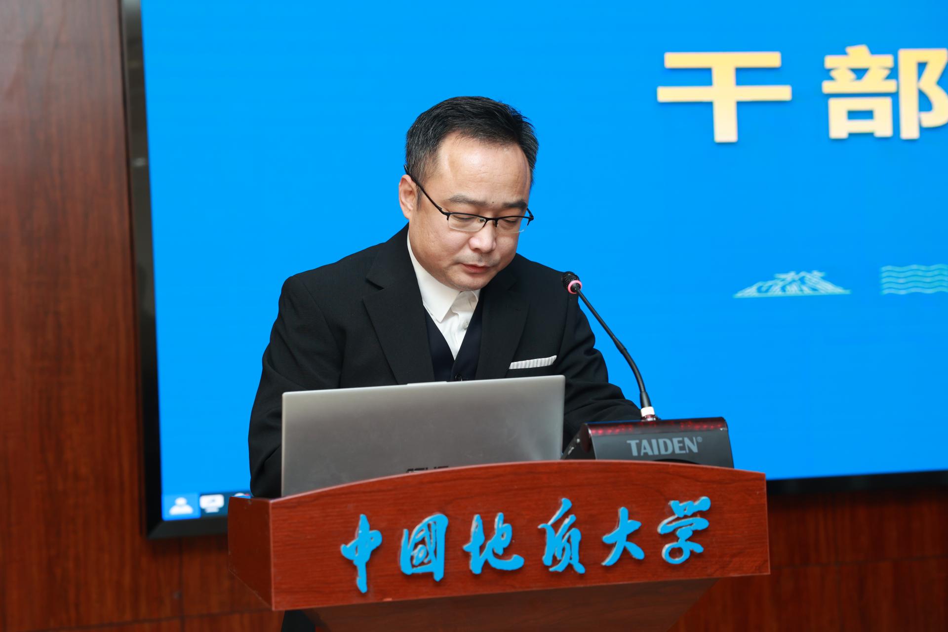 校长王焰新宣读《中共教育部党组关于王甫等同志职务任免的通知》《教育部关于李建威等职务任免的通知》。王甫同志任中共中国地质大学(武汉)委员会常委、副书记,李建威、王力哲同志任中共中国地质大学(武汉)委员会常委、副校长。免去唐辉明同志中共中国地质大学(武汉)委员会副书记、常委、委员,赖旭龙同志中共中国地质大学(武汉)委员会常委、委员、副校长职务。