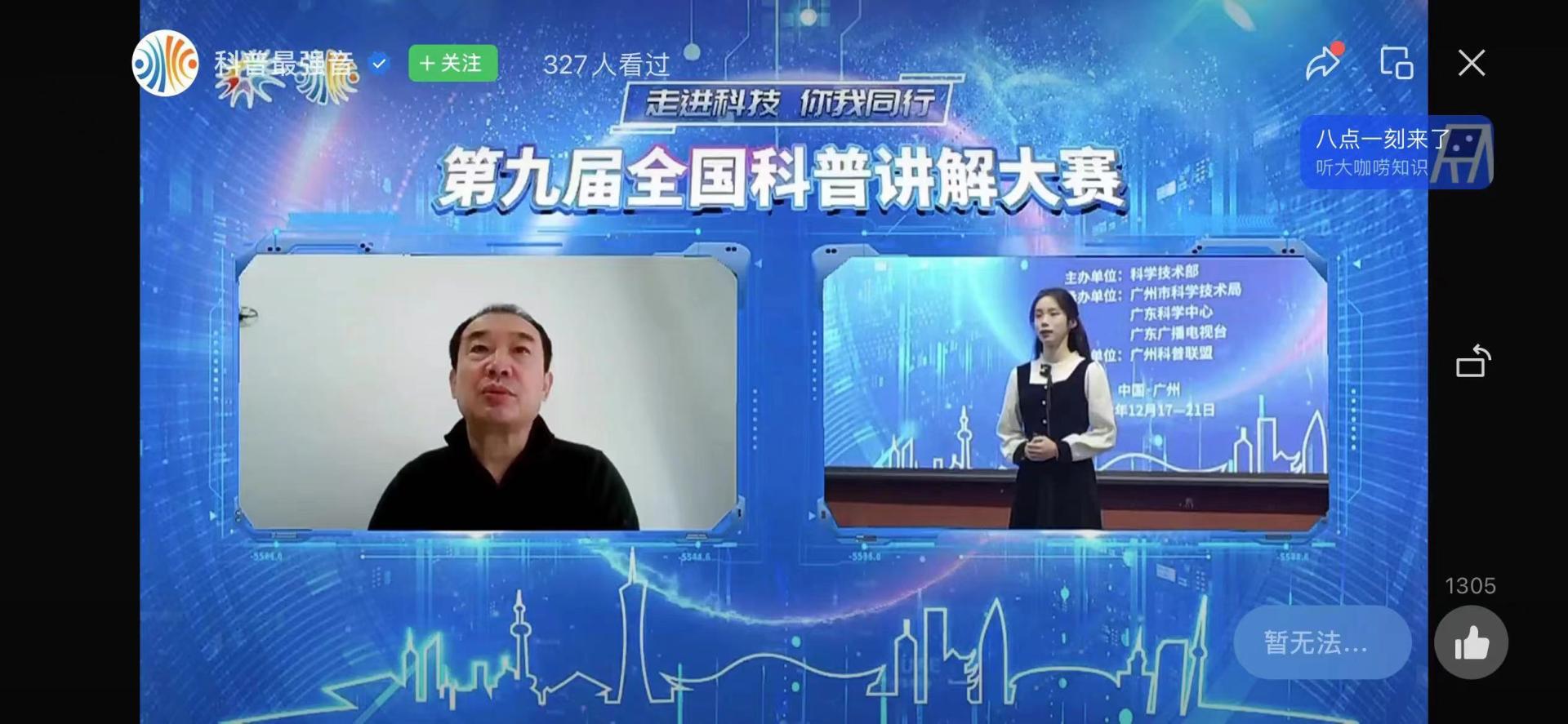 本届大赛主题为“走进科技 你我同行”,分半决赛和总决赛两个赛段,采取全程线上视频展示结合线上专家评审的形式举行。11月底,李虹佳同学通过教育部遴选,成为代表教育部参赛的6位选手之一,之后通过激烈竞争晋级总决赛。李虹佳同学总决赛的讲解题目是《“祝融号”的极限生存挑战》,她用极具亲和力的语言和直观生动的动画,讲述了祝融号经过92天的历程到达火星开展巡视控测工作时,为了应对火星的恶劣环境所开展的通过三结砷化稼电池整列解决能源问题、应用纳米级气凝胶和正十一烷集热窗技术进行保温等系列技术创新工作。李虹佳现场表现冷静大方、反应机敏,表现出了深厚的讲解功底,获得现场专家评委和广大观众的普遍好评,最终取得优异成绩。