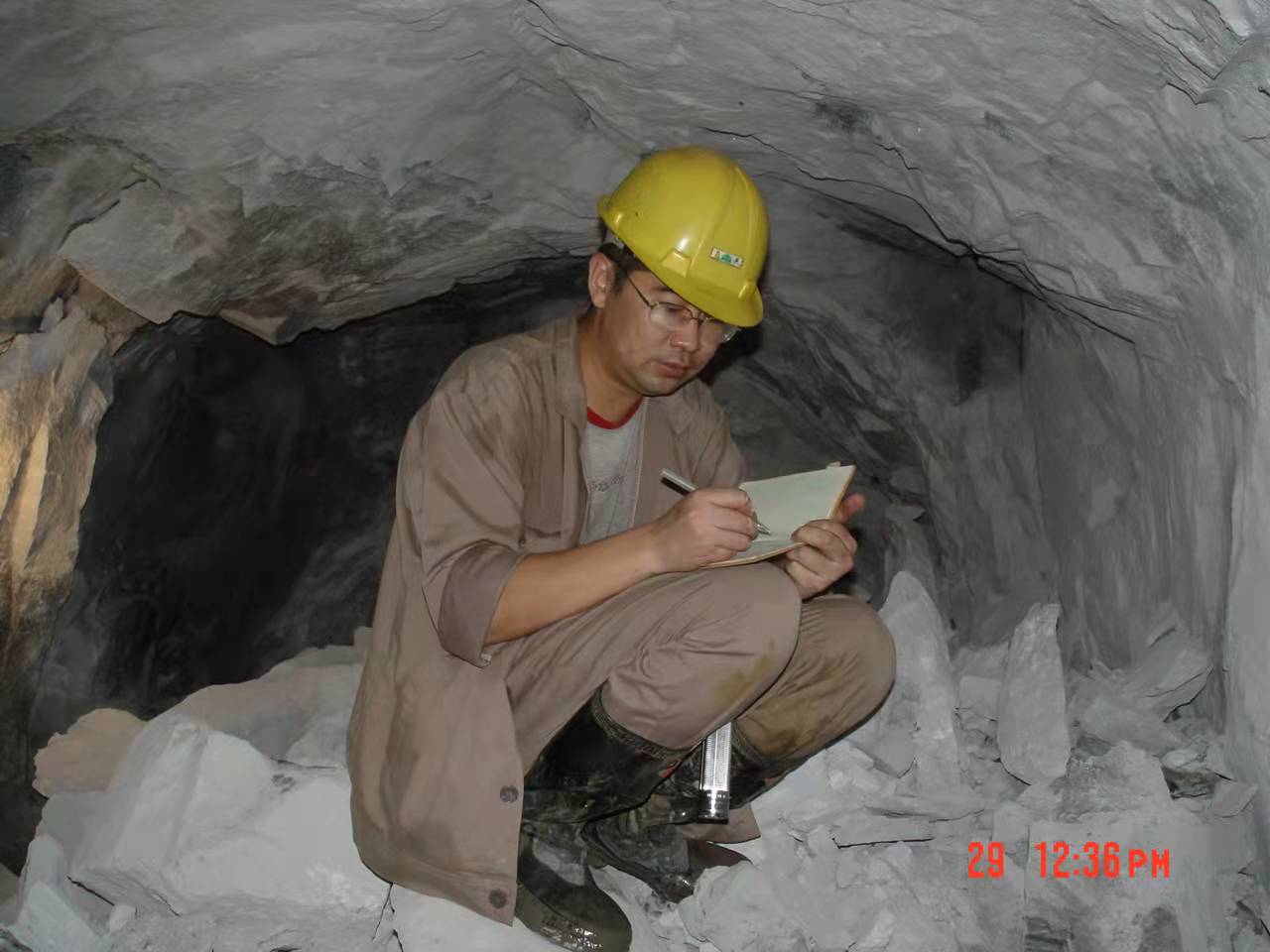 2014年初夏,夏庆霖研究团队前往云南个旧,徒步野外路线调查。途中遇见山洪暴发,洪水顷刻间阻隔了前行的道路,进退两难。为了不影响工作进度,他们在仔细判断洪水暂时不会继续上涨后,决定涉水过河。于是团队成员手拉着手,在齐腰深的河床里摸索前行,富含泥沙的山洪,让他们吃尽了苦头,但万幸的是设备、样品和野外记录薄全都安然无恙。