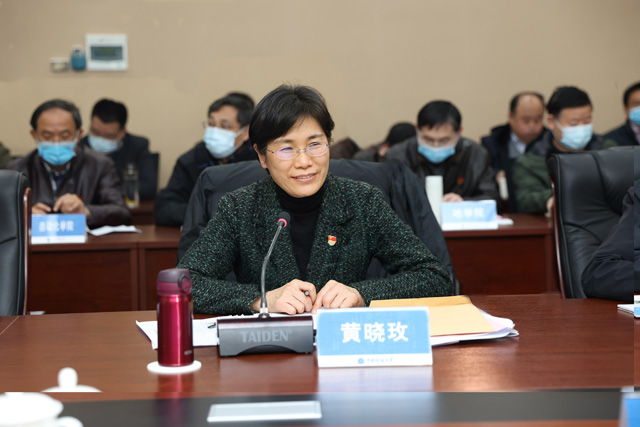黄晓玫作总结发言说,学校将立足新发展阶段,做好三方面工作:一是深入学习宣传贯彻党的十九届六中全会精神和湖北省委十一届十次全会精神。精心组织六中全会精神的学习培训和分类宣讲,确保理论学习全覆盖。二是加强党的建设,强化党对学校工作的全面领导。坚持人才引领发展的战略地位,营造识才爱才敬才用才的优良环境,服务湖北打造全国重要的人才中心和创新高地。三是推动学校事业全面融入和服务国家、湖北省经济社会发展。承担起建设科教强省的主力军使命,发挥学校优势和特色,把论文写在荆楚大地上,服务国家、湖北经济社会高质量发展,为湖北省早日实现“建成支点、走在前列、谱写新篇”的战略目标作出地大贡献。