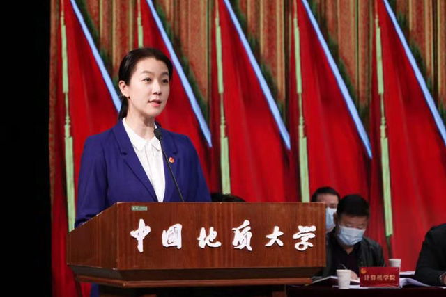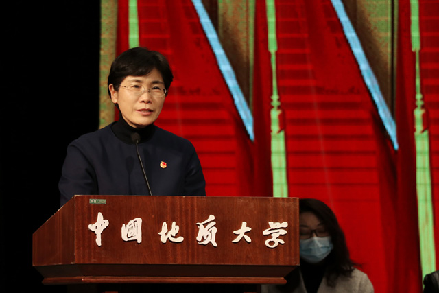 黄晓玫充分肯定了过去几年我校共青团围绕中心、服务大局取得的成绩。她要求,全校各级团组织要牢牢把握共青团工作的根本任务、政治责任和工作主线,在服务构建学校高质量育人体系中谋划推进工作,为学校改革发展凝聚最大青春合力。她寄语全体地大青年,要坚定理想信念,做爱党爱国爱民有志青年;要锤炼高贵品德,做品格高尚有德青年;要练就过硬本领,做知行合一有识青年。她号召全校青年学生切实担负起时代赋予的光荣使命,在夺取新时代中国特色社会主义伟大胜利、建成社会主义现代化强国的宏伟征程中展现新时代地大青年的赤诚担当。