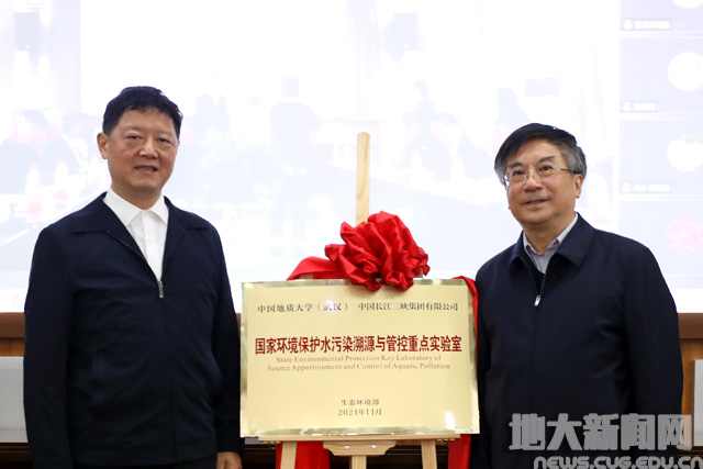地大新闻网讯(通讯员邓娅敏 摄影张睿) 11月21日,由我校和中国长江三峡集团有限公司合作共建的国家环境保护水污染溯源与管控重点实验室以线上线下相结合的方式召开学术委员会成立大会。刘丛强院士、夏军院士、校长王焰新院士、中国工程院钮新强院士、王超院士、吴丰昌院士等学术委员会成员,湖北省生态环境厅科技与合作处处长张忠华,长江生态环保集团有限公司李巍副总经理,长江生态环境工程研究中心相关负责人,副校长周爱国及相关职能部门负责人,实验室骨干成员等50余人参加了会议。