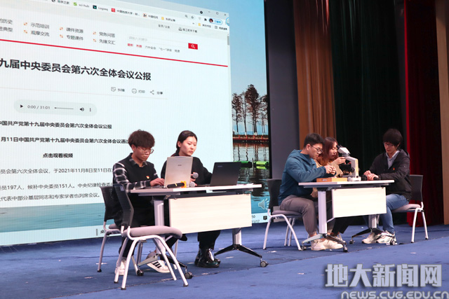黄晓玫代表学校党委部署了党的十九届六中全会精神学习贯彻工作。她强调,党史学习教育已经进入第三阶段,学校要围绕学习贯彻习近平总书记在党的十九届六中全会上的重要讲话精神和会议精神,迅速掀起学习浪潮,切实抓好学习教育,广泛开展宣传宣讲,抓好学习转化。各党组织要担负起政治责任,压实主体责任,确保学习全覆盖;要纳入“形势与政策”教学大纲,列入党委理论学习中心组、党校培训、干部教师培训、支部理论学习议题;要突出抓好党员领导干部学习,发挥领导干部“头雁作用”。要广泛开展宣传宣讲,对全会精神进行全方位宣传、多角度报道、深层次解读;要充分发挥“美丽中国讲师团”“红色之声”“地学之光”等师生群体力量,组织领导干部、党员师生深入基层、深入师生开展宣讲。要抓好学习转化,把“十个坚持”作为掌握历史主动的重要武器、推动各项工作的重要遵循、加强党性修养的重要指引;把学习成果体现到各项日常工作中,体现到“我为群众办实事”实践活动中,体现到全面深化改革推进过程中,体现到“双一流”建设和“十四五”规划实施中,推动学习贯彻党的十九届六中全会精神走深走实。