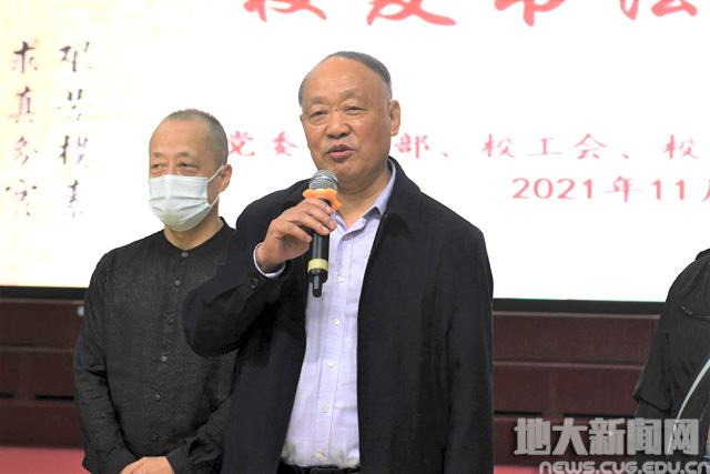 王林清对书法家们的到来表示热烈欢迎和衷心感谢。他说,书法艺术源远流长,是中华文化的瑰宝,学校作为一所以地球科学为主要特色的高等学府,有着深厚的历史文化底蕴和人文精神情怀,这次活动就是彰显和弘扬学校69年来办学历程中积淀的文化内涵和地大精神的一次盛会,也是表达对新时代和学校的热爱之情与美好祝愿的一次契机。
