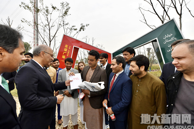 地大新闻网讯(通讯员罗文旭 罗金刚)为庆祝中巴建交70周年,11月2日,“中国——巴基斯坦友谊广场”揭牌仪式在汉口江滩举行。巴基斯坦驻华大使莫因•哈克率领的代表团与湖北省政府、武汉市政府相关领导、企业和高校代表等出席仪式。受湖北省委外办、湖北省教育厅邀请,我校师生代表共同见证了这一历史性的时刻。