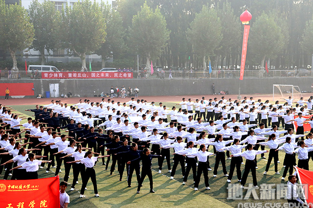 广播操代表队队员们洋溢着青春活力,整齐划一的动作,流露着地大学子的蓬勃朝气。矫健的身姿舞动青春,点燃这场充满激情的盛会。紧张刺激的拔河比赛中,大家使出浑身气力,团结协作,最后自动化学院夺得拔河比赛冠军,而亚军由计算机学院夺得。