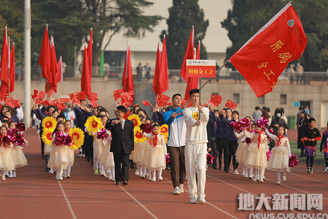 地大新闻网讯(学生记者胡芯蕊 吕晗月 潘柯宏 田宇 扎西拉姆 陈金 蔡玲 朱师锐 摄影王俊芳 张玉贤 杨泽慜 王嘉瑞 侯浩威 张健凯 孙长恒 陈叙 梁子惠 尚宗义)10月29日,学校秋季运动会在南望山西区运动场开幕。校领导黄晓玫,成金华,赖旭龙,王华,王林清,刘杰,刘勇胜,周爱国,党委常委、宣传部部长储祖旺,校长助理蒋少涌,学校各二级单位负责人及全校4000余名师生参加开幕式。