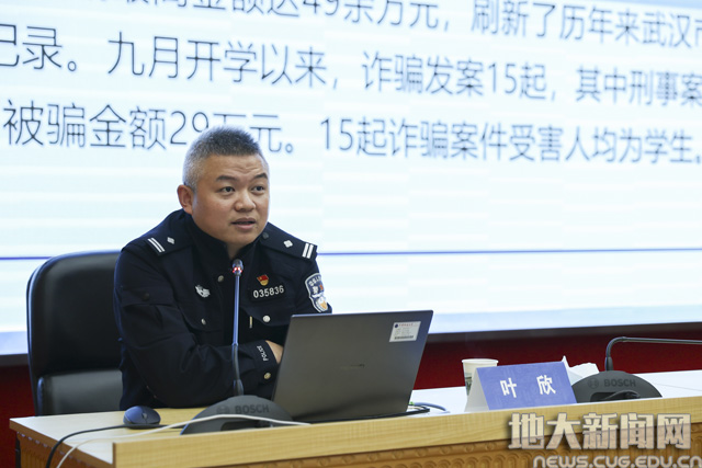 叶欣围绕电信网络防诈骗作专题报告,介绍了学校近年来防诈骗工作情况,通过典型案例使大家了解诈骗类型、特点、诈范识别与防范方法。