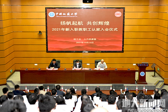 地大新闻网讯(通讯员李梦琳 摄影戴薇 张光裕)10月15日,扬帆起航、共创辉煌——2021年新入职教职工“认家”入会仪式在南望山校区东区教学综合楼A0113会议室举行。校党委副书记、工会主席王林清,副校长刘勇胜,2021年新入职教职工、相关单位负责人、十八届工会委员会委员、各分工会主席及教职工代表参加仪式。仪式由校工会常务副主席喻芒清主持。