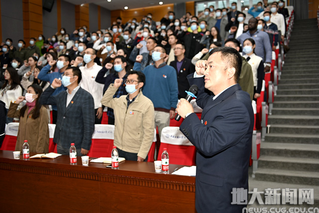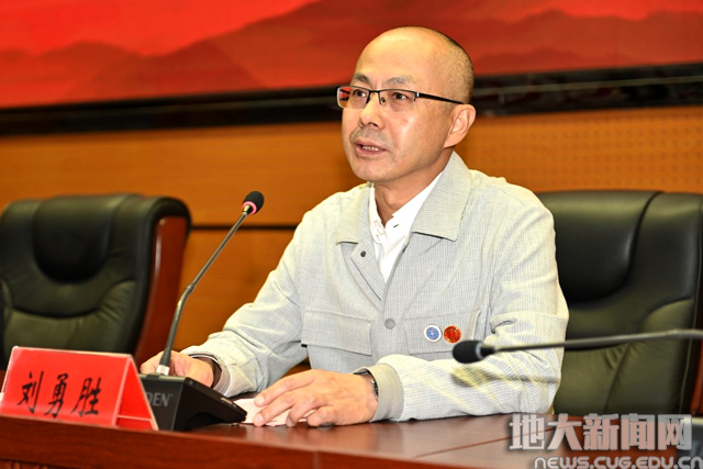 刘勇胜向新入职教职工介绍了我校基本情况及近年来办学所取得的成绩。他希望全体新进教职工秉承“艰苦朴素,求真务实”的校训精神,砥砺前行,不懈奋斗,努力做地大的大先生、大学者,服务地大的跨越式发展,为早日实现地球科学领域世界一流大学的地大梦努力奋斗。