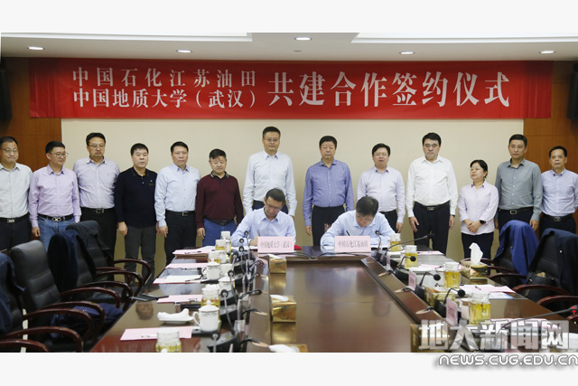 地大新闻网讯(通讯员周迪)10月15日,我校与中国石化江苏油田签署共建合作协议。中国石化集团江苏石油执行董事、党委书记、油田分公司代表方志雄,油田分公司总会计师杨占玄,我校党委副书记成金华以及双方相关职能部门负责人参加签约仪式。
