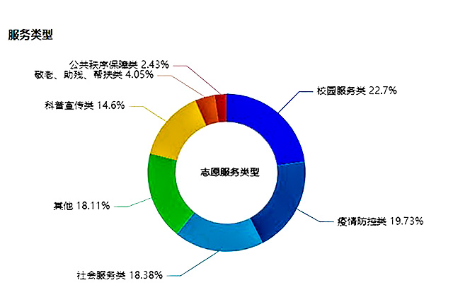 “志汇纪”微服务平台建设为我校志愿服务工作提供了强有力支持,推进了新时代志愿服务工作,截至9月23日,志愿服务类微应用合计使用3万余人次,志愿服务活动开展525次,包含社会服务类、校园服务类、科普宣传类、疫情防控类、公共秩序保障类、敬老助残帮扶类等各类志愿服务活动。
