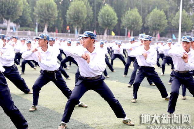 由各学院新生组成的千人方阵分别进行军体拳和团体操表演,他们的动作干净利落、口号掷地有声,展现了大学生积极向上、热情洋溢的青春风采。