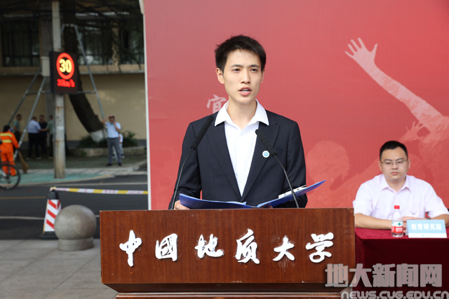 在校生代表、校学生会轮值主席张小溪为新生们分享了“最地大”的选择,鼓励新生们多探索、多拼搏、多担当,努力做到爱校荣校有我、爱国强国有我。