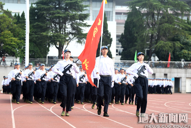 地大新闻网讯(记者田甜 摄影王俊芳 张玉贤)9月24日上午,我校2021级大学生军训汇演暨开学典礼在南望山校区西区操场举行。中国科学院院士殷鸿福,校领导黄晓玫、王焰新、成金华、唐辉明、赖旭龙、王华、王林清、刘杰、周爱国,武昌职业学院党委书记王大耀、校长助理王宇,学校各学院、管理与服务部门负责人,学工系统干部教师,学生代表,以及2021级4796名新生参加典礼。典礼同步在长江日报官方平台、斗鱼、今日头条西瓜视频、哔哩哔哩、抖音、新浪微博、微信视频号进行直播,线上观看人数超过15万人。