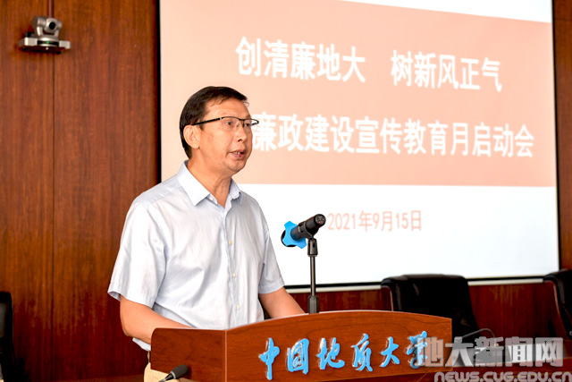 地大新闻网讯(通讯员陈慧)9月15日,我校启动党风廉政建设宣传教育月活动。在校校领导,党委常委,校长助理,校党委委员、纪委委员,各二级党组织书记、纪委书记(纪检委员),管理与服务机构各单位主要负责人参加会议。