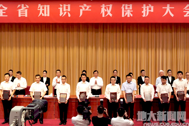地大新闻网讯(通讯员严森 李想姣)7月29日上午,湖北省知识产权保护大会在武汉洪山礼堂召开,我校作为首届专利金奖获奖单位应邀参加,副校长赖旭龙和窦斌教授等参加大会。