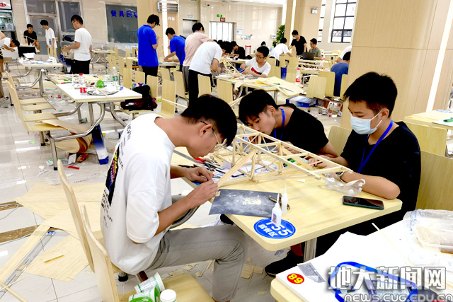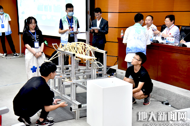 地大新闻网讯(通讯员张美霞 王焱 摄影张怡悦 王灿) 7月15日-18日, 2021年“中国一冶杯”第八届湖北省大学生结构设计竞赛,暨第十四届全国大学生结构设计竞赛湖北省分区赛在我校南望山校区举行。26所高校的71支队伍通过初选,在“用最轻质量承载最重荷载”的核心要求下,展开寻找“变参数桥梁结构模型设计与制作”最优解的现场较量。