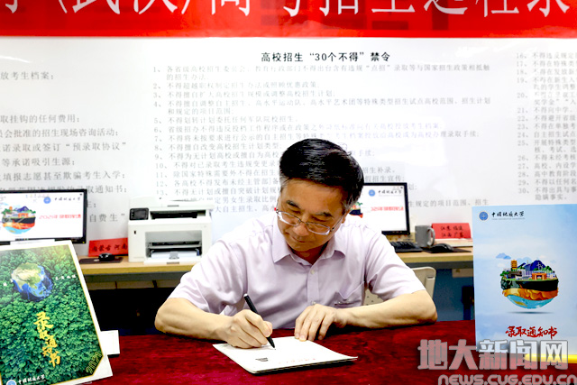 地大新闻网讯 (通讯员霍少孟 摄影王俊芳) “亲爱的同学,我是中国地质大学(武汉)的校长王焰新。选择地大,成就梦想。我在地大等你来,立凌云志,做追梦人,为美丽中国、宜居地球建设贡献力量。”7月16日晚,校长王焰新院士来到招生直播间录制视频,向录取到我校的2021级新生表示祝贺,致以期许。视频后续将通过AR技术链接到录取通知书封面,传至4700名新生。
