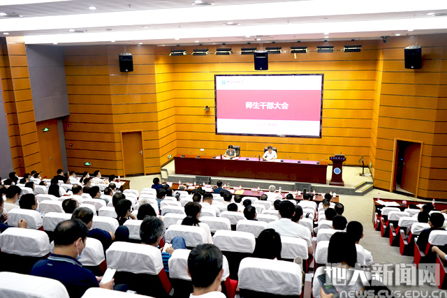 地大新闻网讯(记者庞伟红)7月14日,我校在南望山校区教学综合楼举行师生干部大会,全体校领导、党委常委、校长助理,党委委员、纪委委员,全体中层干部、学术委员会负责人和高层次人才代表参加会议。校党委书记黄晓玫主持会议。