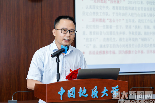 作为获奖代表,学校驻竹山县帮扶工作队队员汤吉、附属学校副校长袁杰和珠宝学院院长尹作为分别交流经验。他们表示,沉甸甸的荣誉凝结着全校所有扶贫人的汗水和努力,他们将在学校党委的坚强领导下,不忘初心、牢记使命、砥砺前行,续写地大人服务乡村振兴国家战略的新篇章。