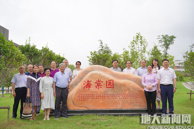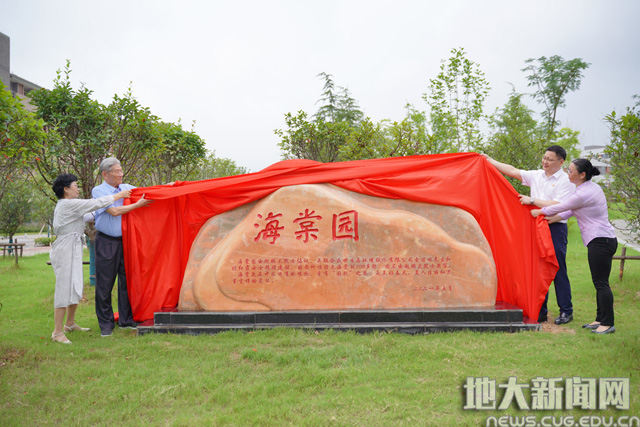 赵鹏大、张红霞、刘杰共同为海棠园揭牌。 (文字编辑庞伟红)
