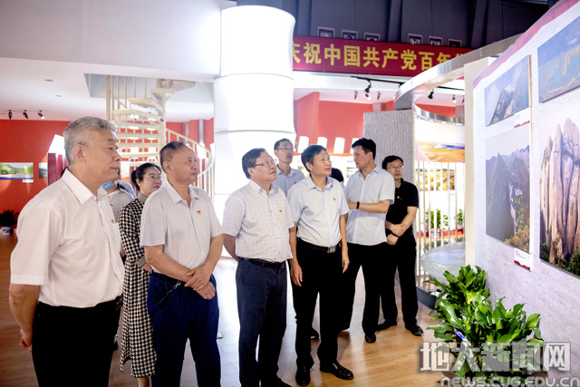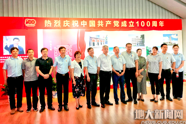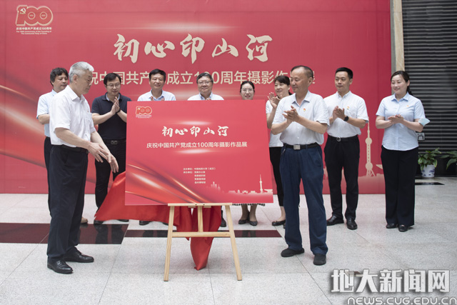 傅安洲致辞。他说,恰逢建党100周年,我校举行《初心印山河——庆祝中国共产党成立100周年摄影作品展》,通过镜头反映了党的光辉历程,以及祖国的大好河山,充分验证了共产党员初心向党、江山为证的坚定信念。他号召全体党员,不忘初心、砥砺前行,共同为自然资源行业和高等教育事业贡献力量。