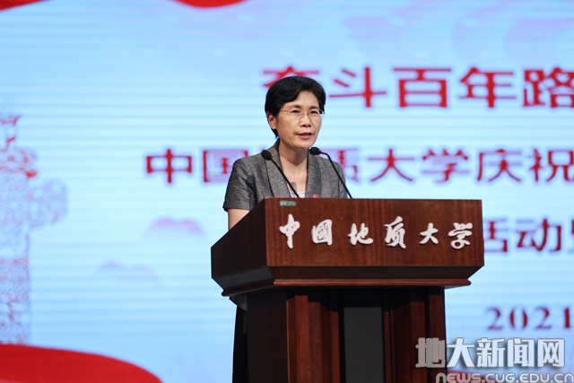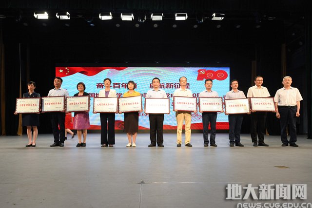 地大新闻网讯(记者庞伟红 摄影王俊芳 田甜 王紫璇)在庆祝中国共产党成立100周年之际,6月29日,我校“奋斗百年路 启航新征程”庆祝中国共产党成立100周年主题党日活动暨“七一”表彰大会在南望山校区弘毅堂举行,中科院院士赵鹏大,退休老校长张锦高,在校校领导,党委常委,校长助理,处级党员干部,党支部书记,受表彰单位和个人代表,新发展党员代表参加大会。校党委副书记唐辉明主持大会。