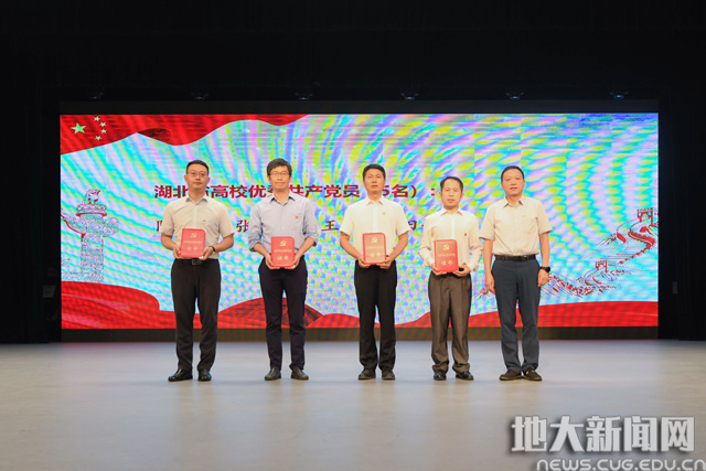 校领导为受表彰先进集体和优秀个人颁奖。谢丛姣获评湖北省优秀共产党员;陈刚等5人获评湖北省高校优秀共产党员,李素矿等6人获评湖北省高校优秀党务工作者,经济管理学院党委等6个基层党组织获评湖北省高校先进基层党组织。