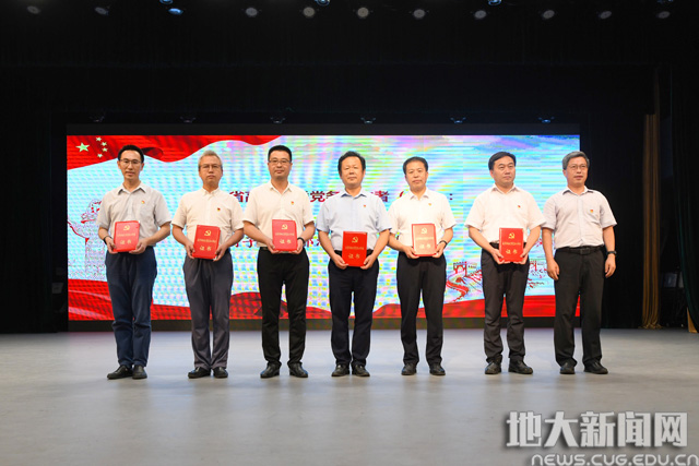 校党委副书记、纪委书记成金华为材料与化学学院党委、工程学院工程地质与岩土工程系党支部、经济管理学院旅游管理系党支部等3个全国党建工作“标杆院系”“样板支部”授牌。