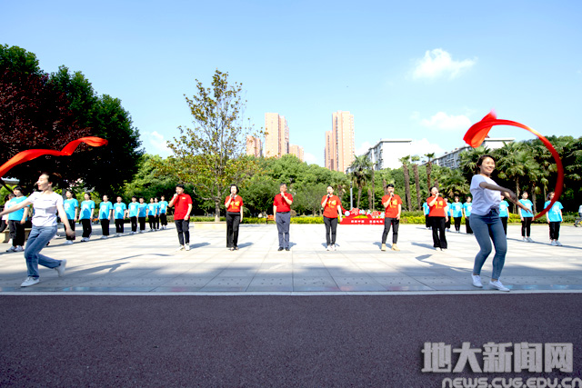 艺术与传媒学院师生带来快闪《唱支山歌给党听》,用歌声抒发对党的深情。