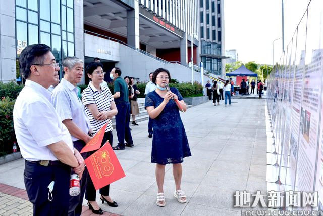 校党委书记黄晓玫致开幕辞。她说,展览以图文并茂的形式,用千幅图片、7万余字,让全校师生共同见证学校与党、与国家、与人民同呼吸共命运的办学历程和历史成就,为广大师生再现学校不忘立德树人初心,牢记为党育人、为国育才使命,为实现建成地球科学领域世界一流大学的地大梦、中华民族伟大复兴的中国梦而不懈奋斗的发展历程。