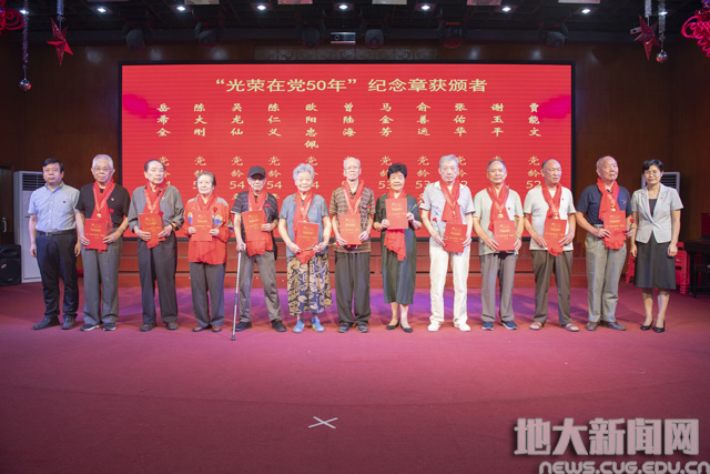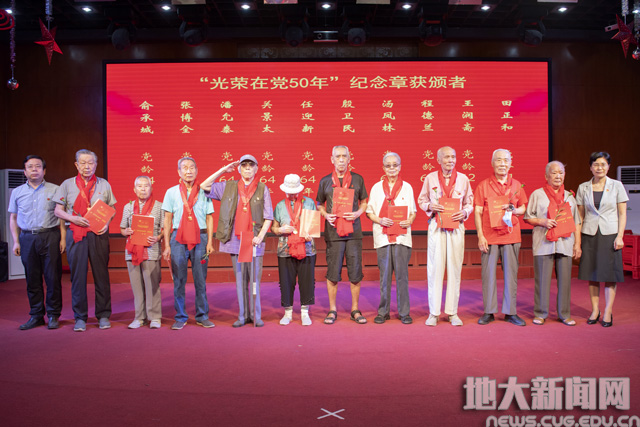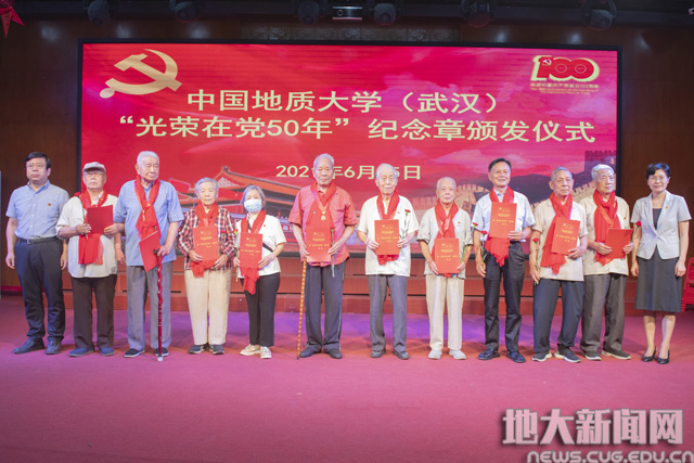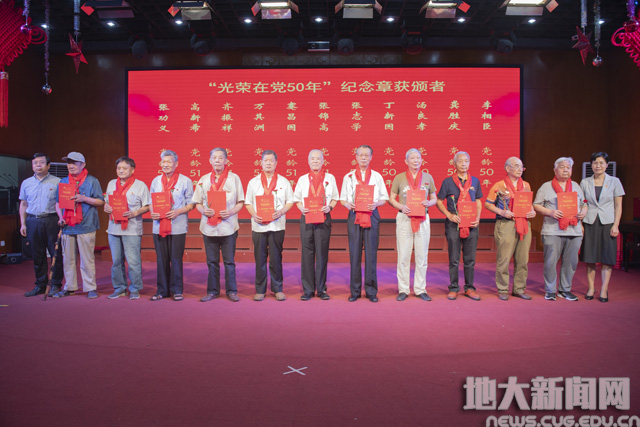 地大新闻网讯(记者田甜 摄影张玉贤 王俊芳)桑榆未晚霞满天,一颗红心永向党。6月25日,“光荣在党50年”纪念章颁发仪式在东区工会活动中心举行。校党委书记黄晓玫,党委副书记唐辉明,学校办公室、党委组织部、党委宣传部、党委学生工作部相关负责人,72名在党50年老党员代表,大学生代表参加仪式。