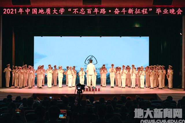 南望山校区毕业晚会在歌曲地大版《起风了》中落下帷幕。2020届毕业生代表重返舞台,通过云合唱形式,与2021届毕业生一同向地大道别。