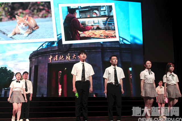广播台带来的配音节目《那些年我们眼中的地大》,通过视频剪辑和现场配音,以颁奖典礼的形式,结合热点趣事和网络热词,将地大学子四年的回忆点滴串联起来,幽默诙谐的呈现形式,让观众笑中带泪。