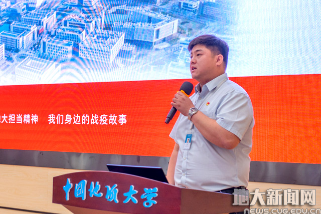 未来城校区管理办公室申亚崴同志分享了自己与同事们参与援鄂医疗队后勤保障的故事,以及近一年来校区的疫情防控工作。他提醒广大青年学子,疫情防控成果来之不易,希望同学们继续理解和支持学校疫情防控工作。