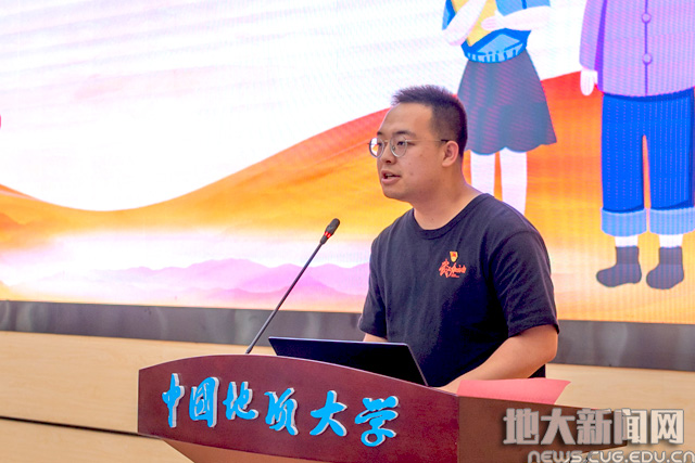 材化学院毕业生徐子扬同学结合亲身经历,分享了他陪同父亲从黄梅赶赴火神山医院施工现场,亲身参与火神山医院建设,亲眼见证“中国速度”的故事。他说,我们要向这些为武汉挺身而出的人们致敬,因为有他们,才有今天的武汉,希望同学们能够弘扬抗疫精神,厚植爱国情怀。