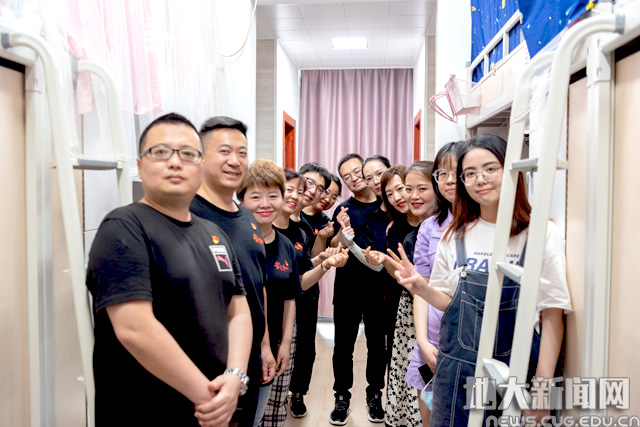 活动期间,陕西医疗队10位队员代表回到疫情期间居住过的宿舍——计算机学院学二组团1栋406,看望同学们并亲切交谈,队员们热泪盈眶地对着镜头说:地大,我们回来了!