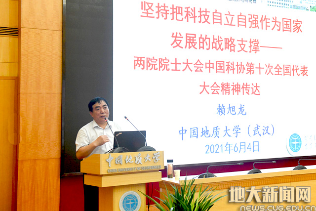 赖旭龙以《坚持把科技自立自强作为国家发展的战略支撑》为题,从大会概况、中央领导讲话精神、会议重要文件和参会体会感想等方面作报告。