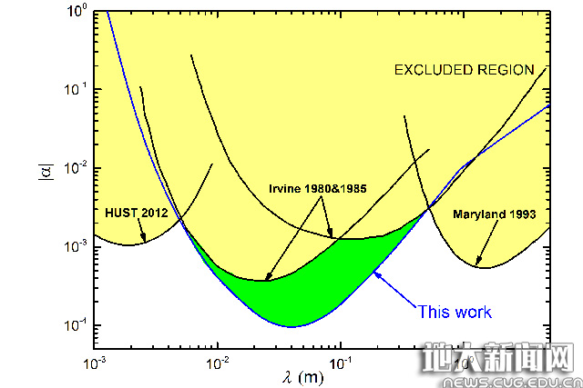 由于引力非常微弱,因而在近距离下检验引力的破缺效应需要克服各种干扰因素,困难重重。研究团队依据华中科技大学引力中心2018年在《自然》上公布的测量万有引力常数实验,利用两个实验中间距不一致的特性,建立理论模型分析实验中的非牛顿引力效应,对实验中各种误差项引入的不确定度进行评估,对实验结果的数据分析最终给出厘米间距下反平方定律破缺的限制。该研究结果给出了50 – 500毫米间Yukawa形式破缺的最强限制,并在60 – 100毫米处将当前国际最好水平提高了7倍,达到国际领先水平,为大统一理论的理论研究提供了实验参考。