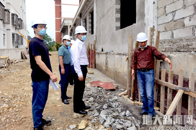 5月27日,刘杰一行驱车来到巴东科教基地,在校方驻地负责人的带领下实地查看了食堂、教学楼、学生公寓等施工现场,对工程质量、材料选择、工艺流程、建筑安全和施工进度进行了深入了解并给出合理改进意见。