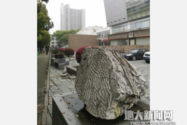 在中国地质大学逸夫博物馆门前广场,就有这样一块波痕遗迹,它静静站在路边,虽然常常被行人所忽视,仍不改沧桑的容颜,向人们诉说着亿万年前地球上发生的故事。